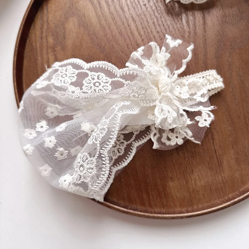 جوفاء الدانتيل نسخة واسعة الطفل عقال الأميرة فتاة رباط رأس مطاطي الرجعية زهرة بيضاء القوس لطيف عقال الشعر التبعي