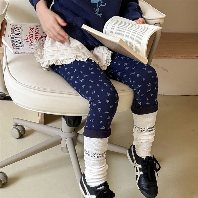جونمي-ليغنغز بناتي بطباعة ، على الطراز الكوري ، لطيف ، مرن ، بنطلون نحيف ، خريف جديد ، من