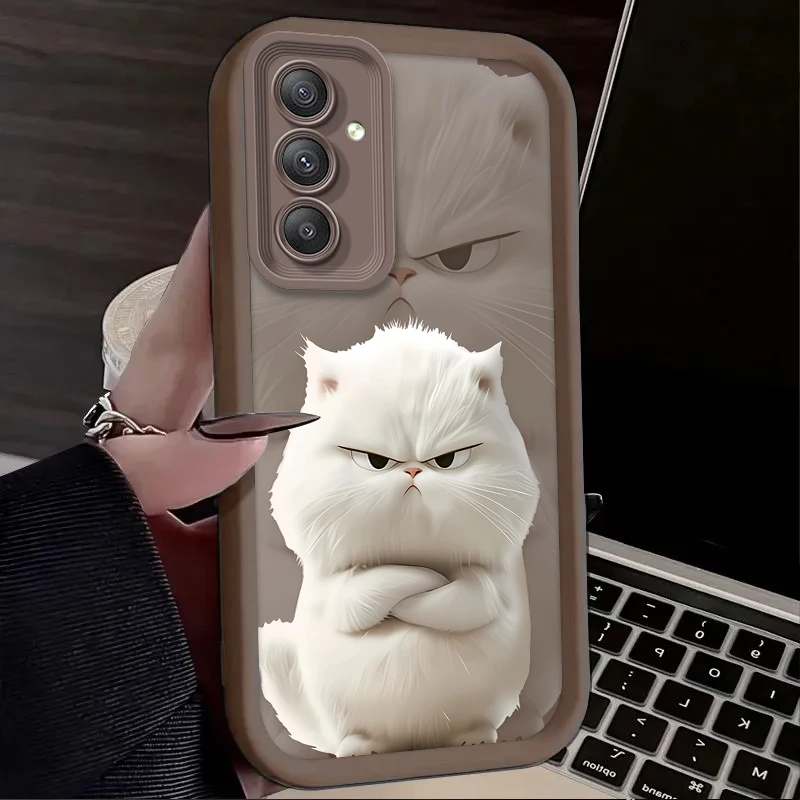 حافظة ناعمة على شكل قطة سوداء بيضاء مضحكة جميلة لهاتف سامسونج جالاكسي S23 S24 S25 Ultra S22 S21 Plus FE 5G A54 A34 A14 A73 A53 A33 5G