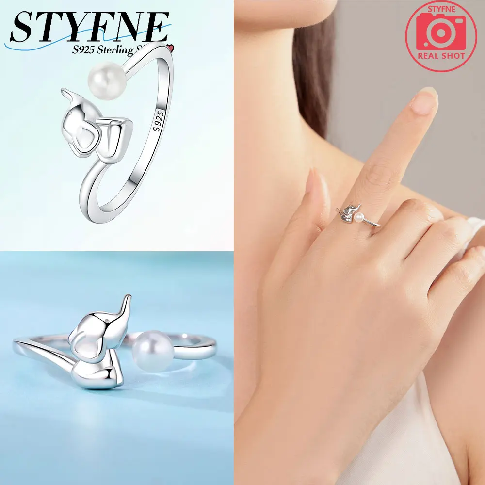 حقيقي 925 فضة الفيل الحيوان الدائري تشيكوسلوفاكيا خواتم الاصبع قابل للتعديل الدائري للنساء مجوهرات الزفاف هدايا مع صندوق هدية