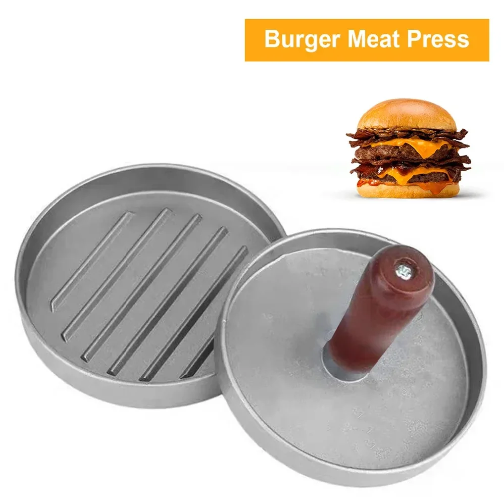 همبرغر اللحوم الصحافة مقبض خشبي جولة لتقوم بها بنفسك قالب غير عصا طلاء باتي صانع لحوم البقر شواء برغر اللحوم الصحافة أداة المطبخ