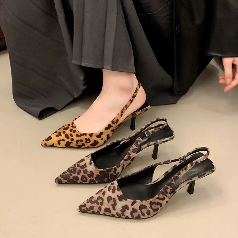 حذاء نسائي بكعب عالٍ صنادل الفهد مثير فستان جديد بمقدمة مدببة شباشب للحفلات موضة الصيف أنيقة مضخات Mujer Zapato