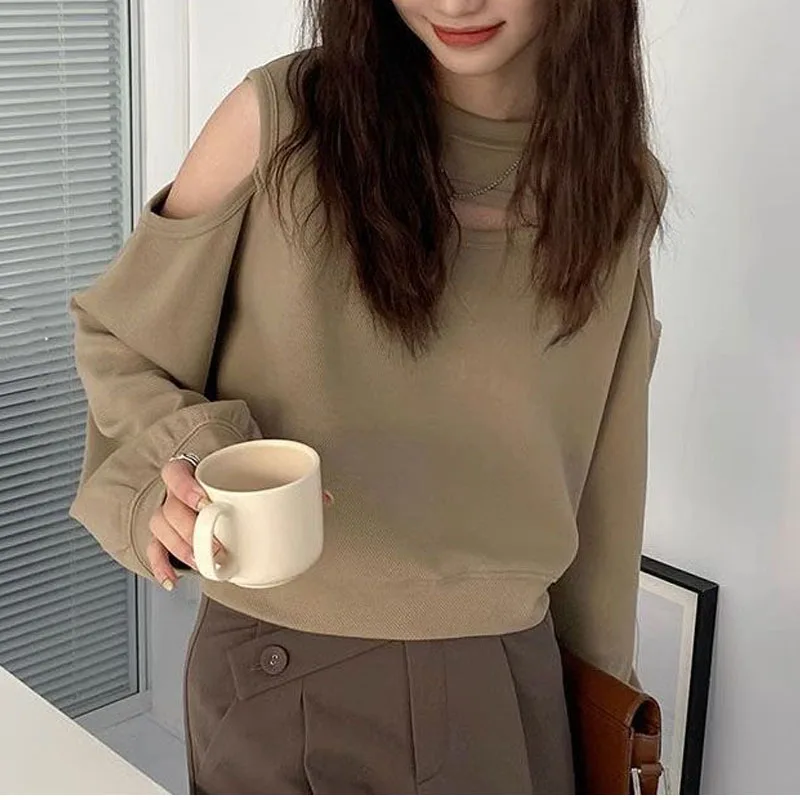 قبالة الكتف سترة طويلة الأكمام ، الرقبة المستديرة ، فضفاضة ، تنوعا ، انفجار الشارع ، شعور التصميم ، النمط الأمريكي ، أزياء الخريف