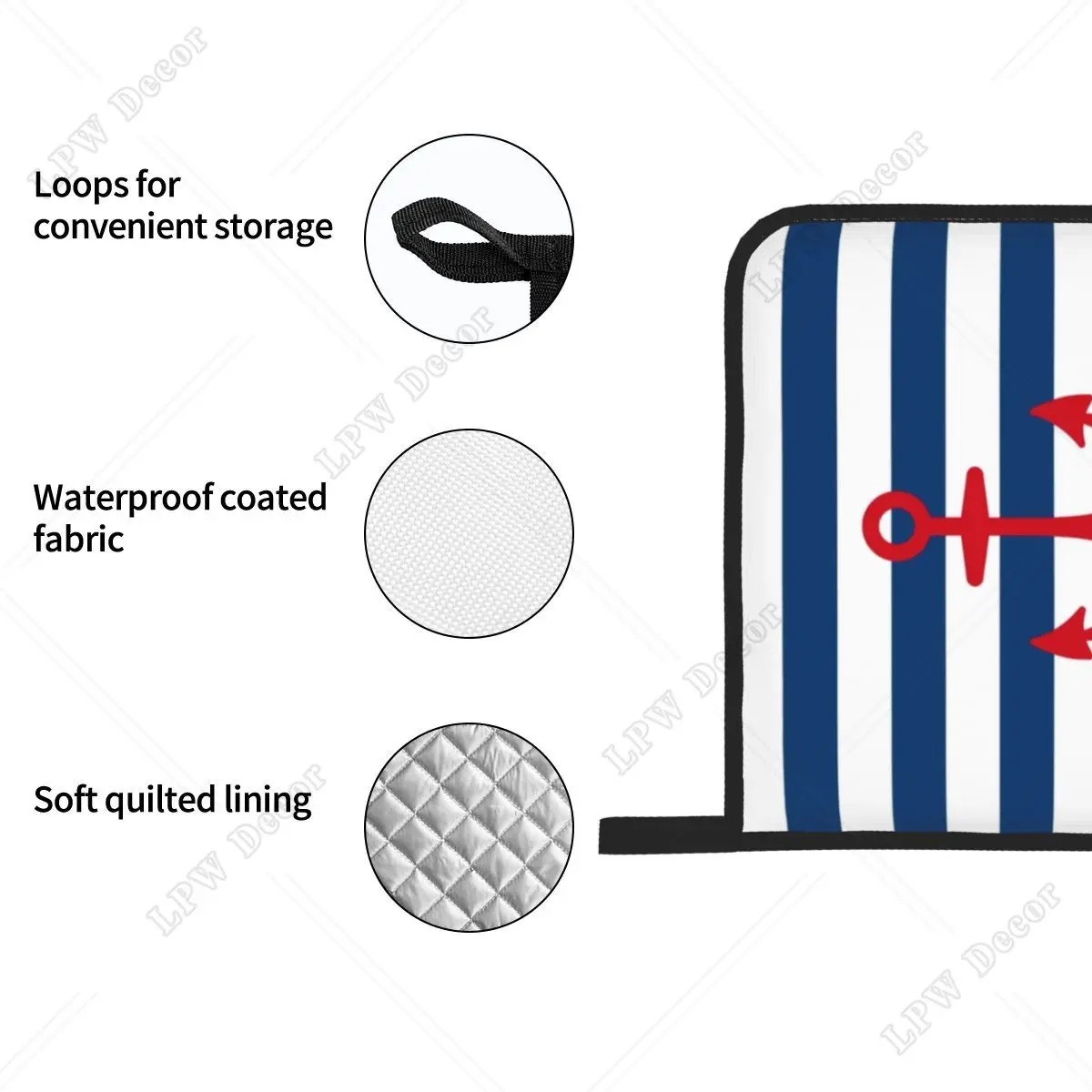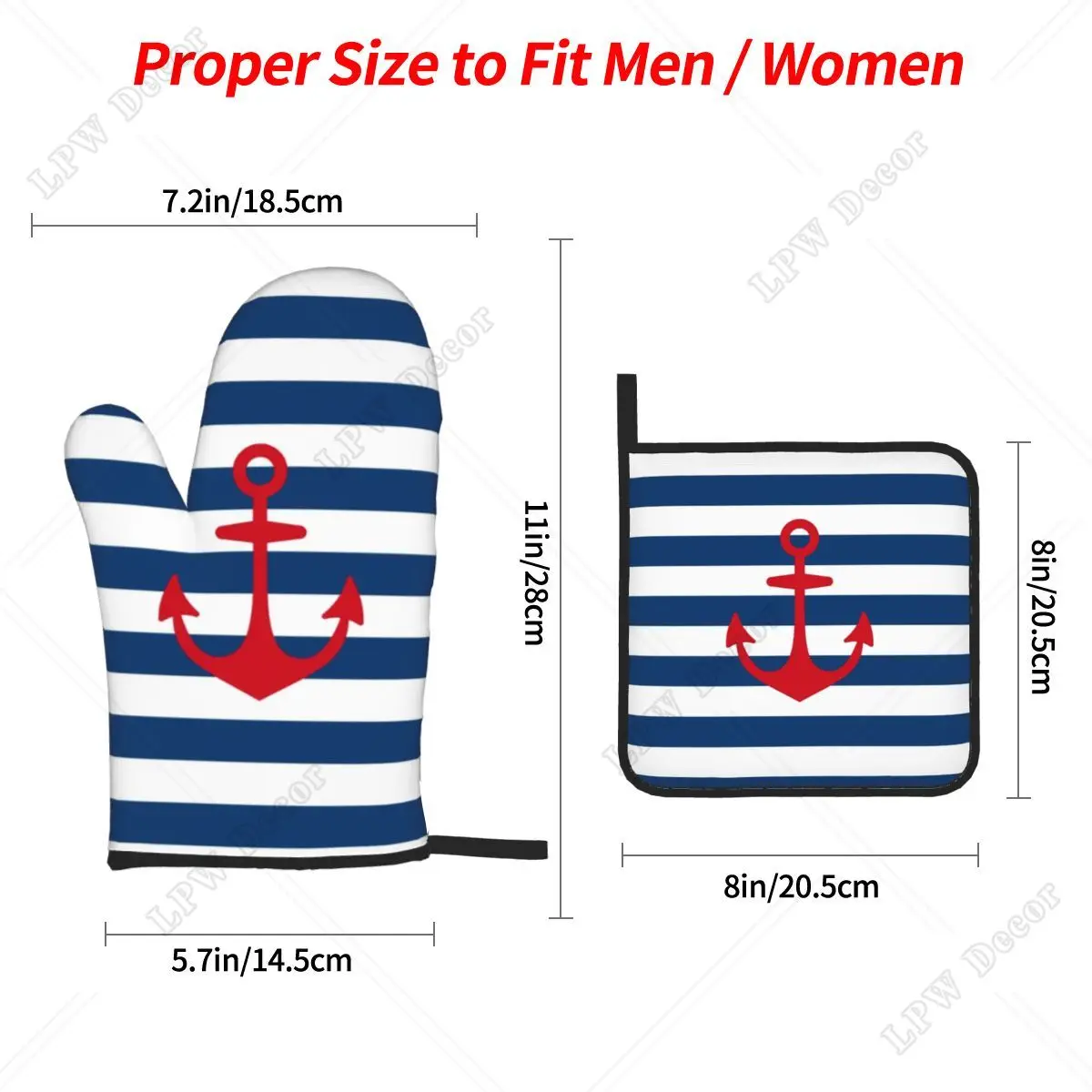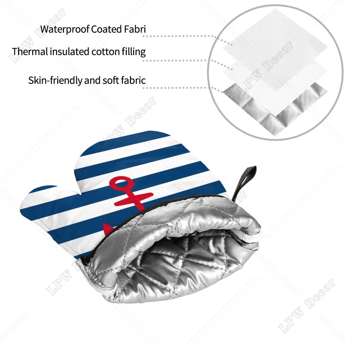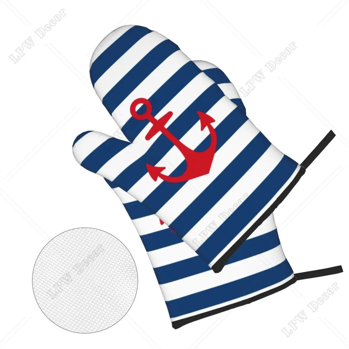 قفازات طبخ بحري مقاومة للحرارة ، قفازات فرن ، حوامل أوعية للمطبخ ، خبز ، شواء ، مرساة حمراء ، على خطوط بحرية ، مجموعات من 4