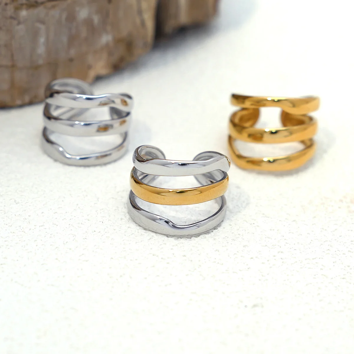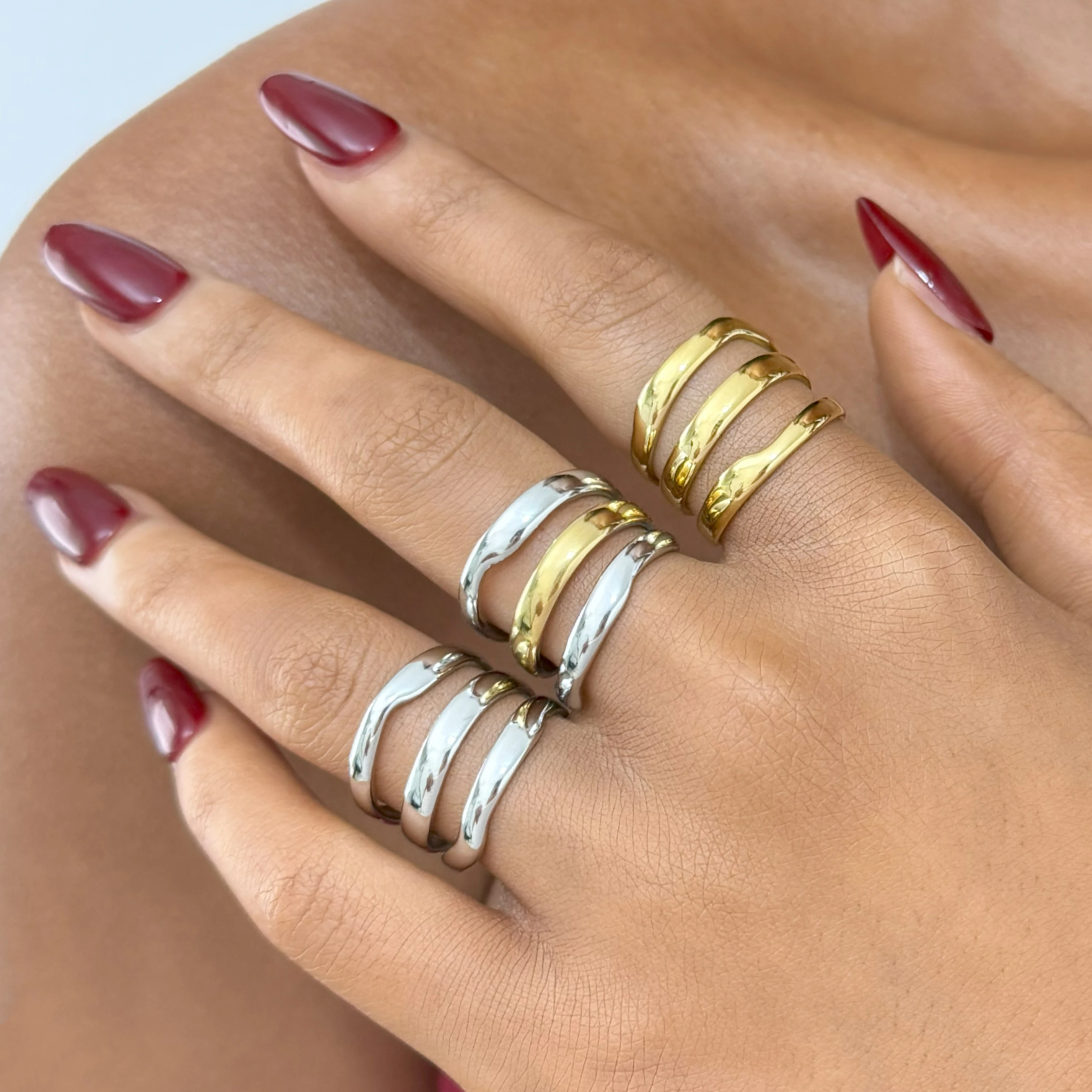 خاتم خط بسيط مطلي بالذهب عيار 18 قيراط من الفولاذ المقاوم للصدأ، خاتم مجوف قابل للتكديس، مجوهرات نسائية، خاتم قابل للتعديل، هدية للحفلات