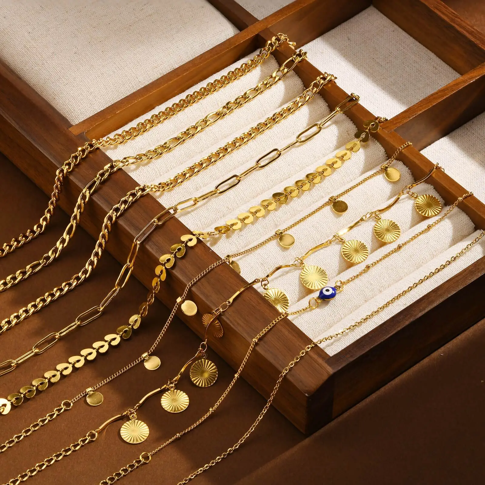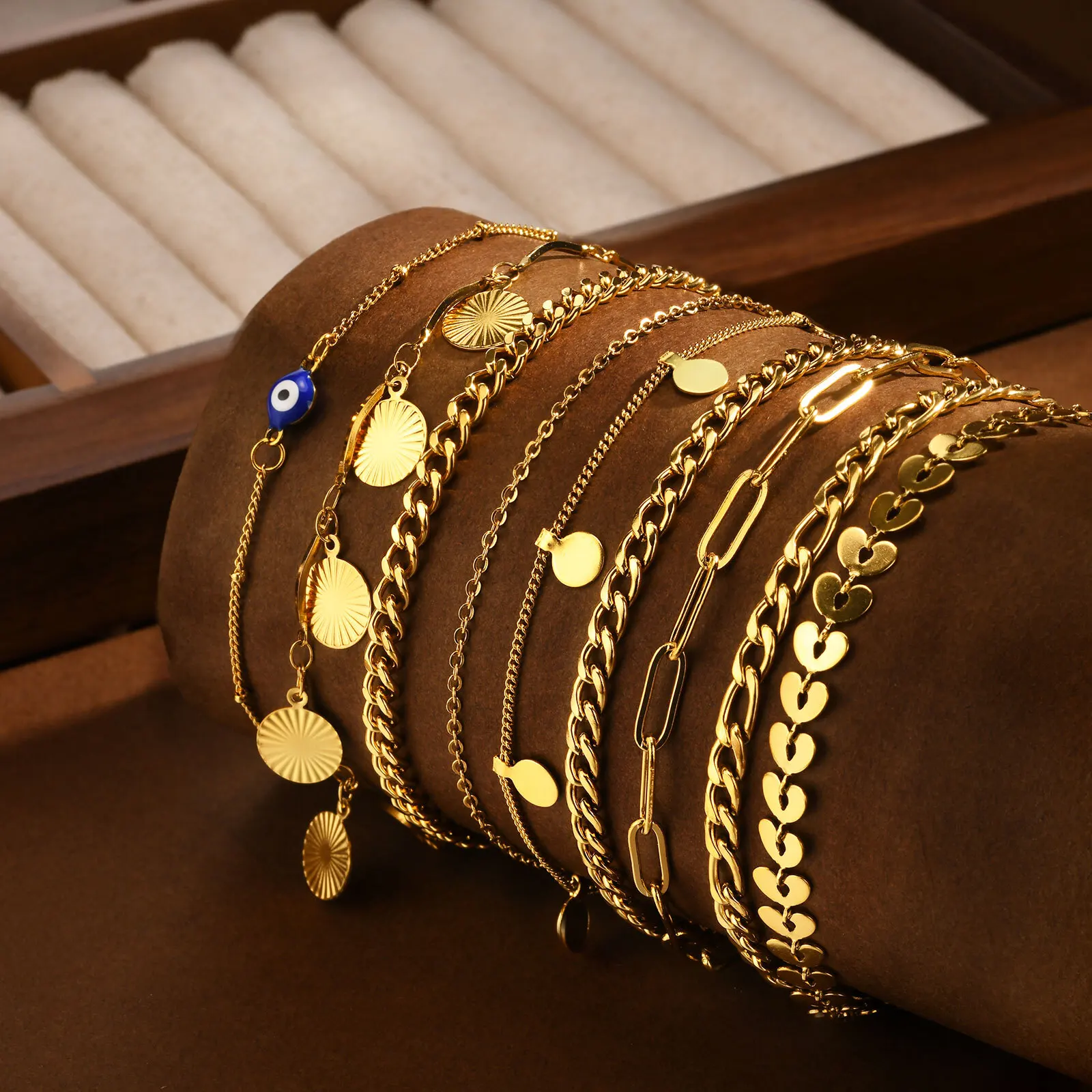 خلخال Vnox Charm للنساء والفتيات، إكسسوارات دائرية على شكل قلب من الفولاذ المقاوم للصدأ، دعامة خلخال بسلسلة ذهبية اللون، مجوهرات صيفية للشاطئ