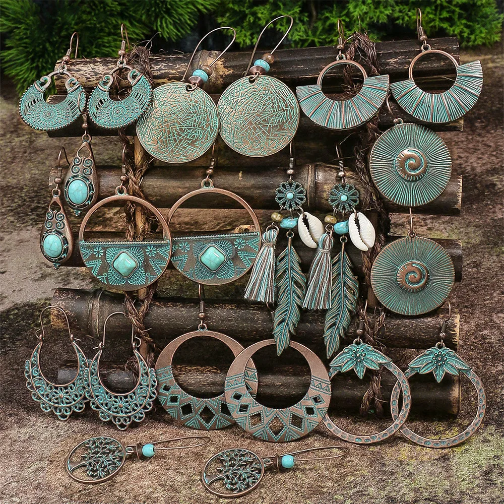العرقية نمط استرخى أقراط للنساء البوهيمي فريد ليف شرابة مستديرة قطرة الماء القرط مجوهرات نسائية Brincos