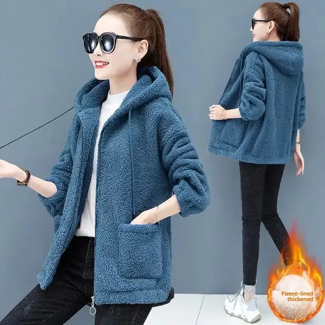 خروف المخملية هوديي المرأة سميكة الساخن بيع للموسم الجديد الخريف الشتاء فضفاضة النسخة الكورية سستة سترة تيدي المخملية