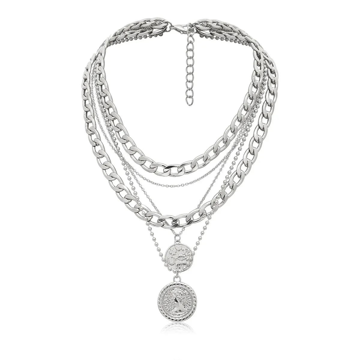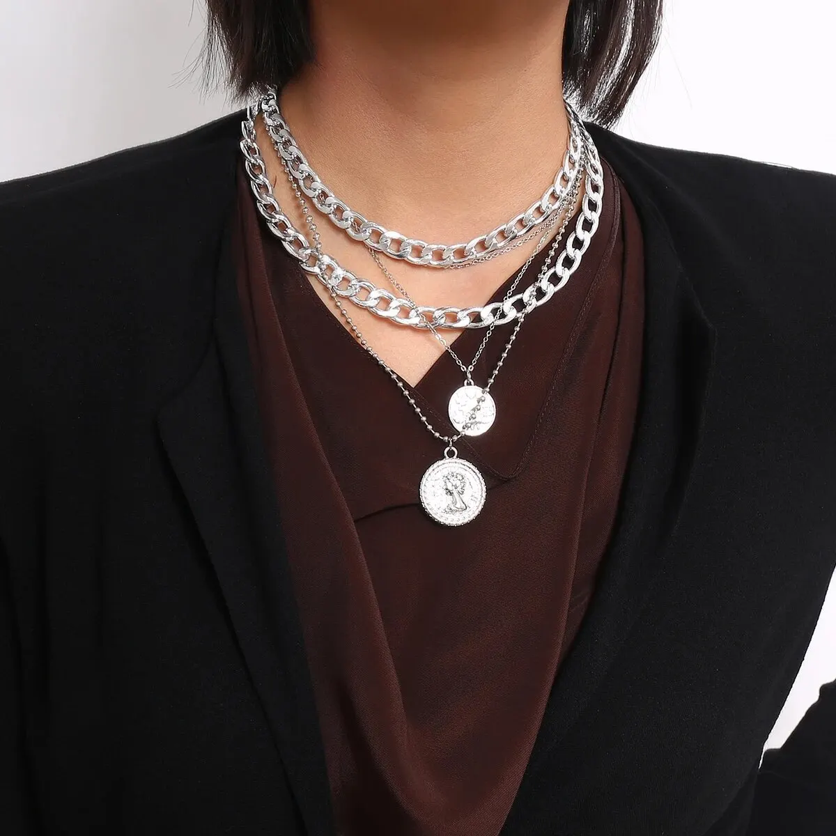 قلادة بدلاية مستديرة متعددة الطبقات للنساء ، لون ذهبي ، سلسلة سميكة ، موضة الهيب هوب ، أزياء بانك ، الحفلات ، إكسسوارات مجوهرات الرقبة ، جديدة