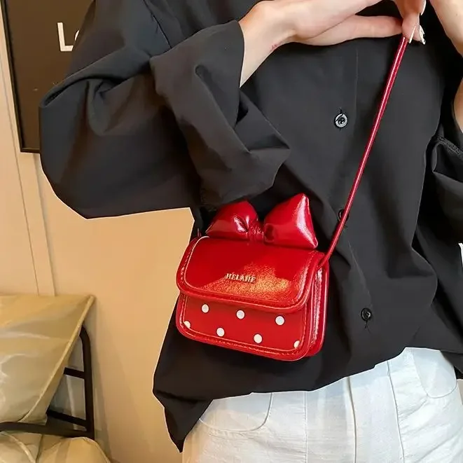 لطيف البسيطة البولكا نقطة فراشة عقدة حقيبة كتف للنساء الأطفال Crossbody الحلو الفتاة أحمر الشفاه محفظة نسائية للعملات المعدنية بولي Leather الجلود