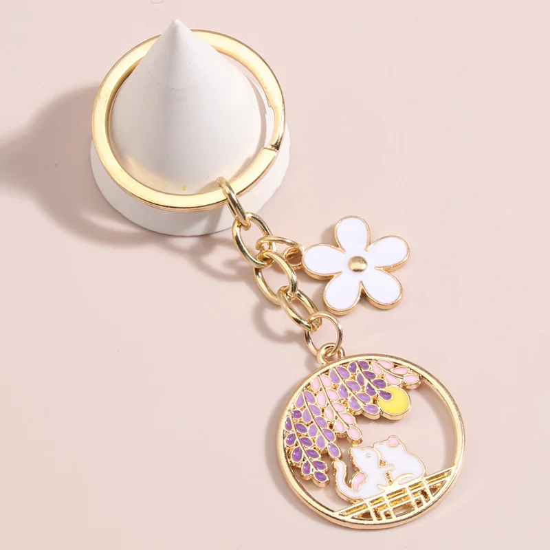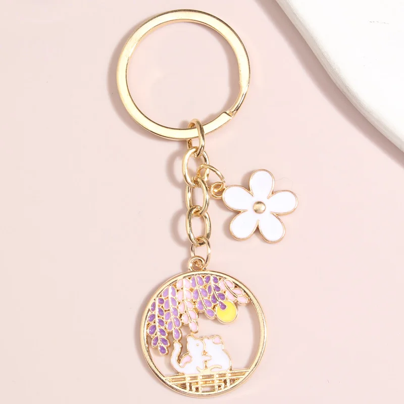 لطيف الحيوان المفاتيح زهرة القمر القط حلقة رئيسية المينا سلسلة مفاتيح هدايا الصداقة للنساء الرجال حقيبة يد اكسسوارات DIY بها بنفسك مجوهرات