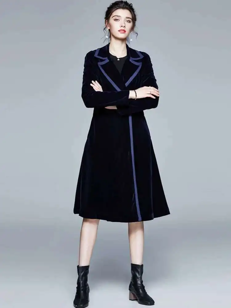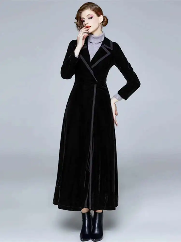 معطف ماكسي مخملي شتوي من JAMERARY معطف نسائي عتيق بياقة مدببة ملفوف أسود سميك ودافئ طويل معطف خندق ملابس خارجية