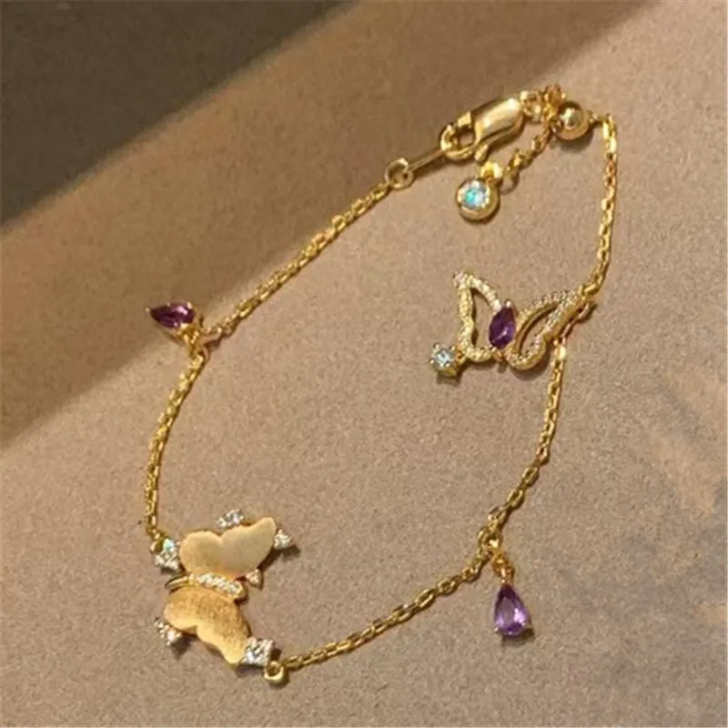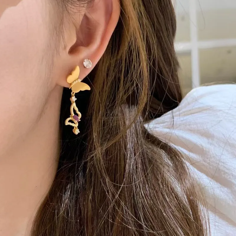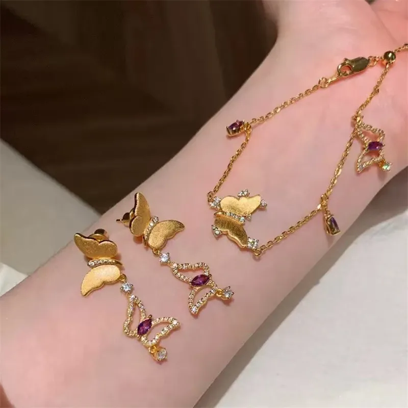 مجموعة مجوهرات وأقراط على شكل فراشة من الزركون الأرجواني المعدني القديم للنساء، إكسسوار حفلات يومي فريد من نوعه