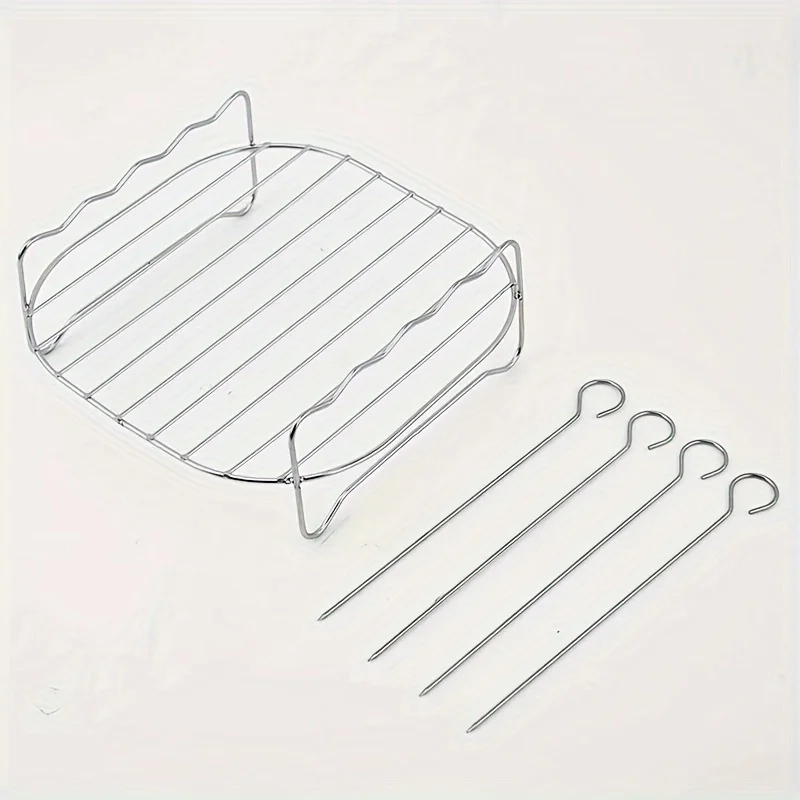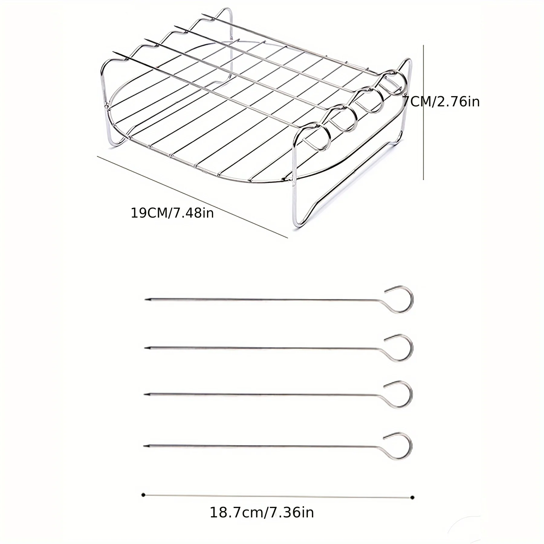 مجموعة واحدة من رف المقلاة الهوائية المصنوع من الفولاذ المقاوم للصدأ مع 4 أعواد اللحوم المشوية ملحقات مقلاة الهواء رف الطبخ للمطبخ