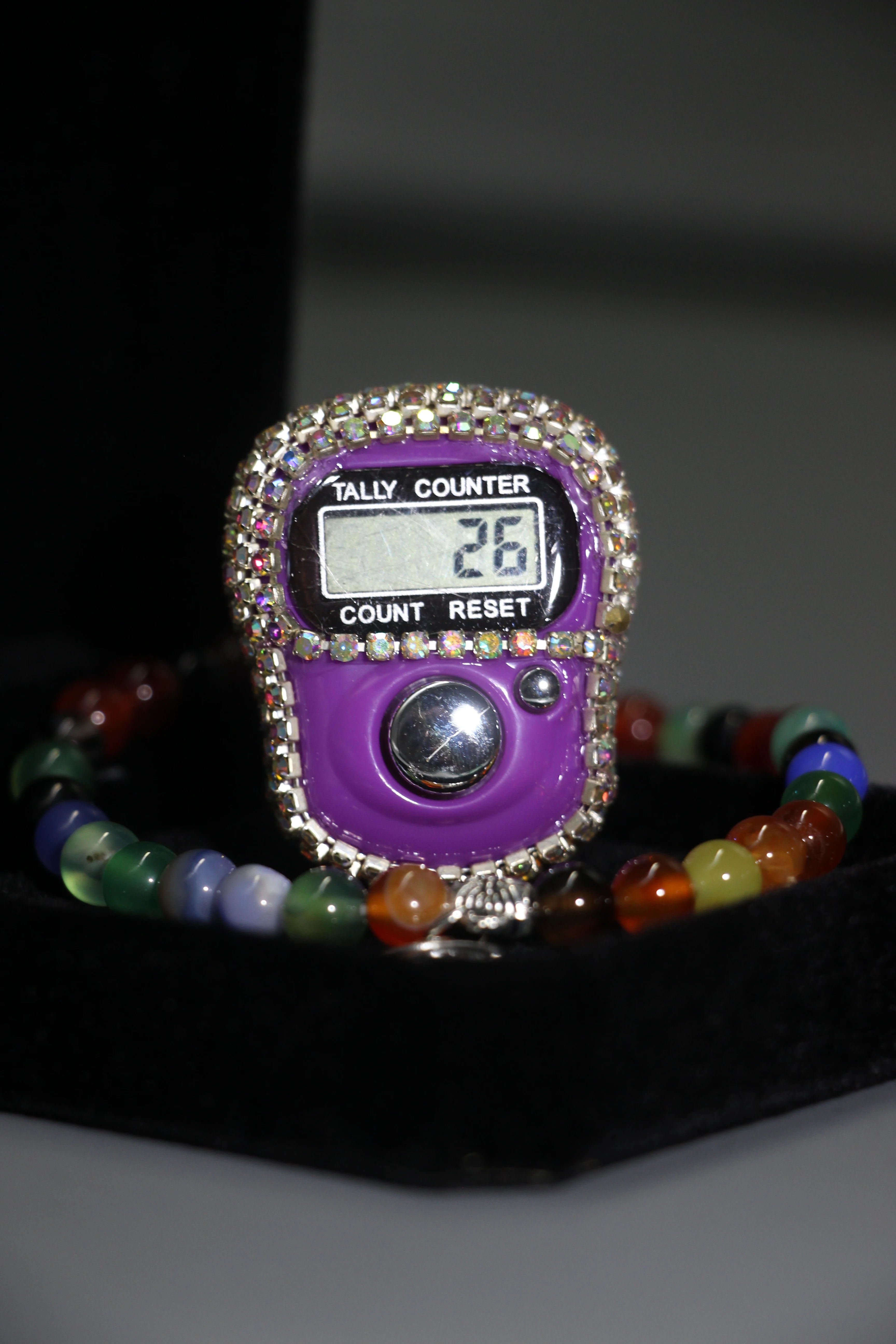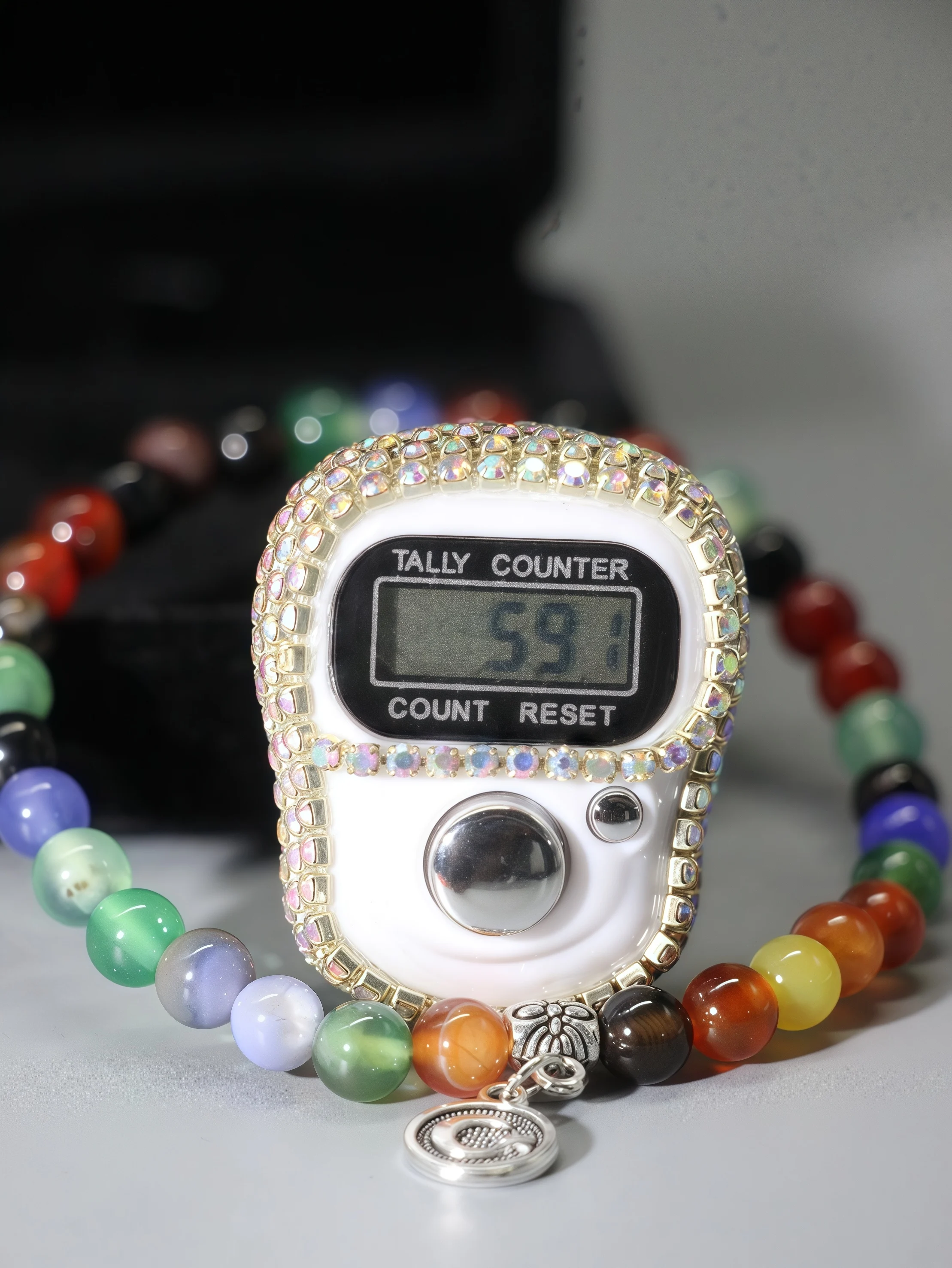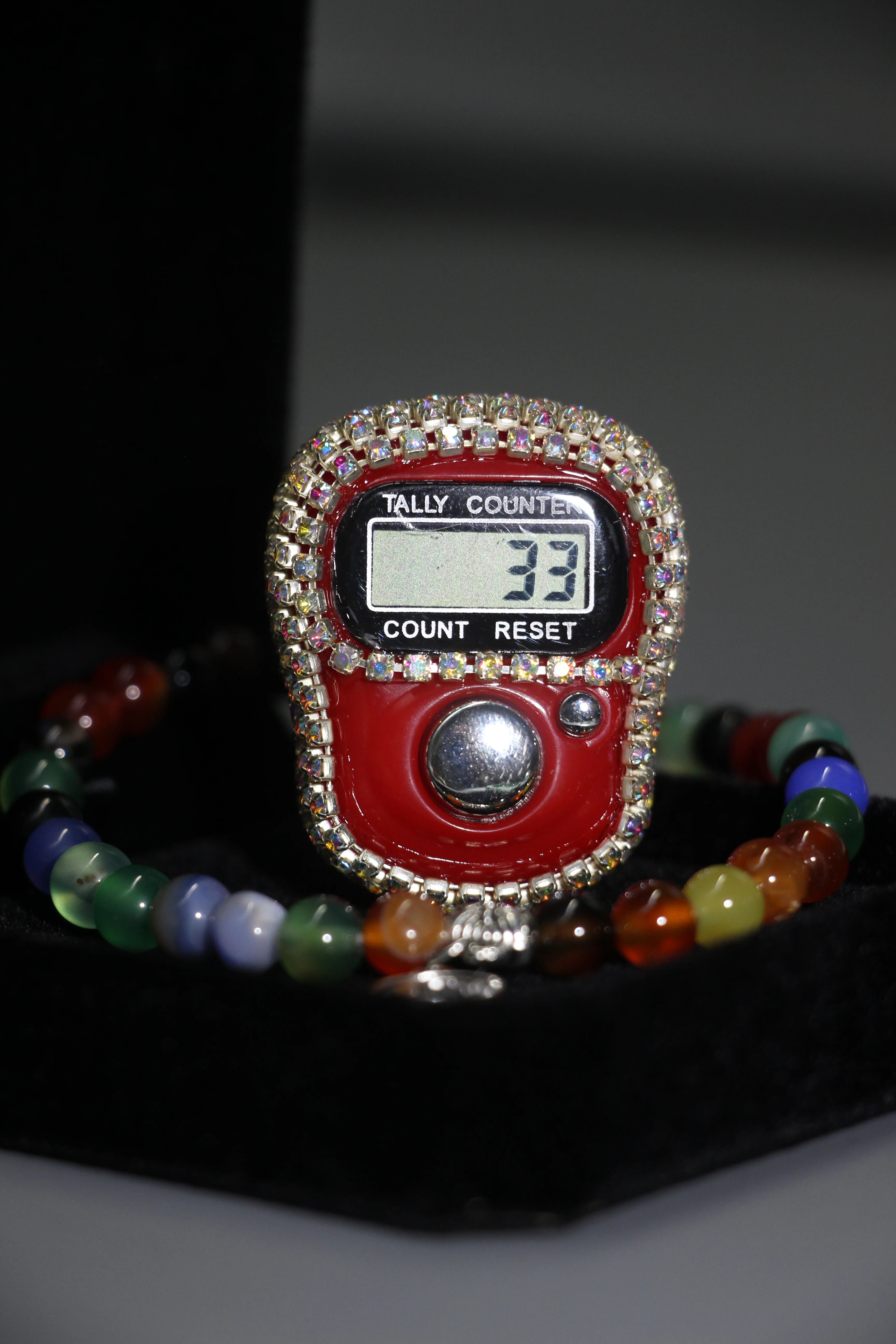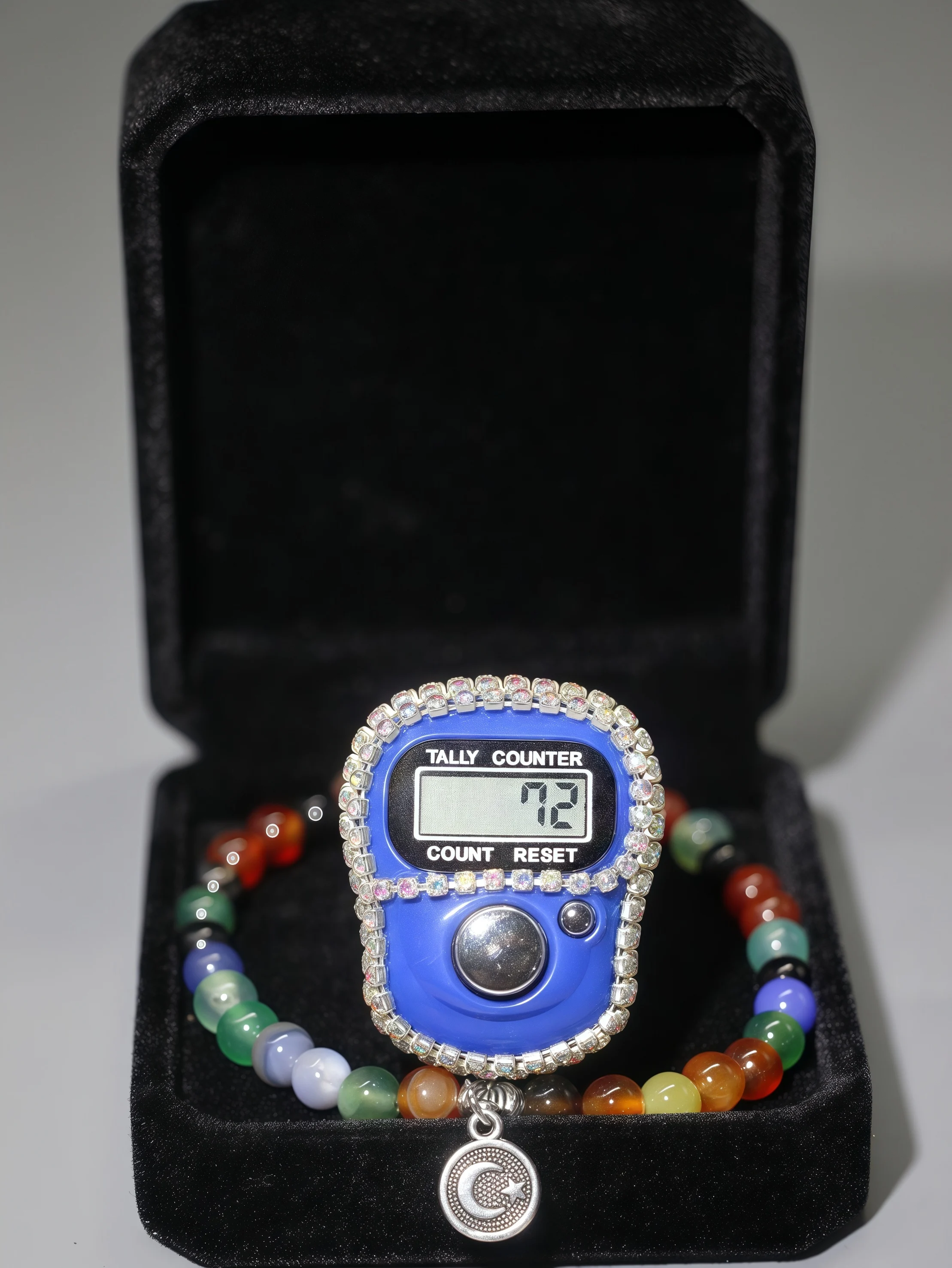 مجموعة سوار وسوار حلقي فاخر من العقيق، شاشة رقمية إلكترونية مكونة من 33 خرزة لصلاة المسلمين، صندوق هدايا أنيق