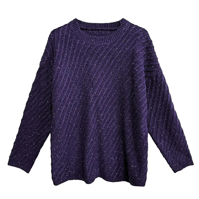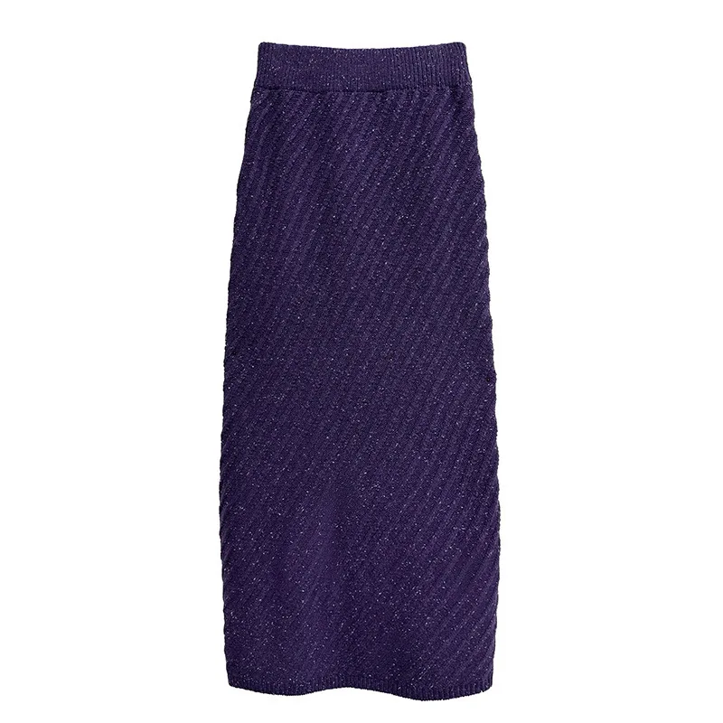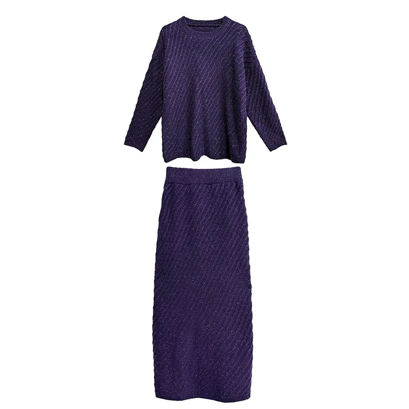 مخطط بلون محبوك سترة فستان مجموعة الخريف الشتاء فضفاض البلوز سترة + تنورة قطعتين مجموعة النساء الأرجواني ZF1452