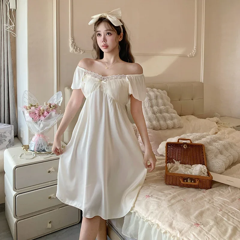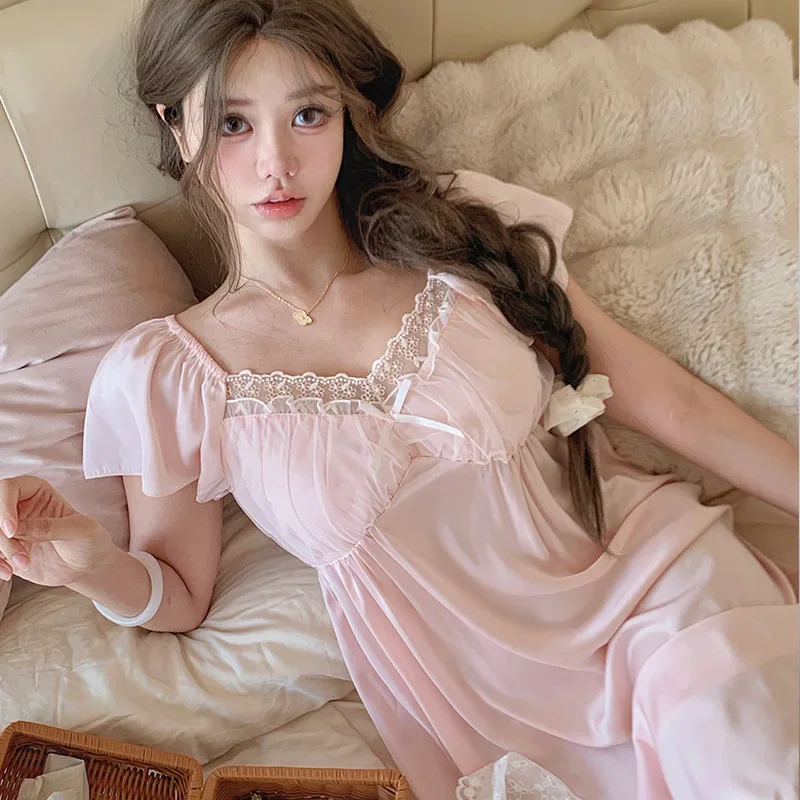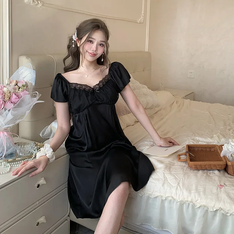 ملابس نوم صيفية من الحرير الجليدي مع وسادة صدر على طراز الأميرة الحلوة بأكمام قصيرة، ملابس منزلية يمكن ارتداؤها للنساء