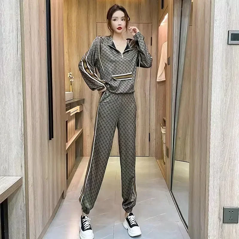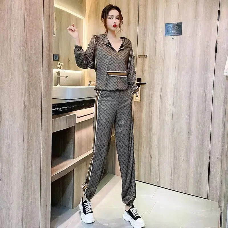 ملابس رياضية عصرية غير رسمية مجموعة ربيع الخريف فضفاضة كبيرة الحجم الملابس النسائية العصرية البلوز السراويل قطعتين البدلة