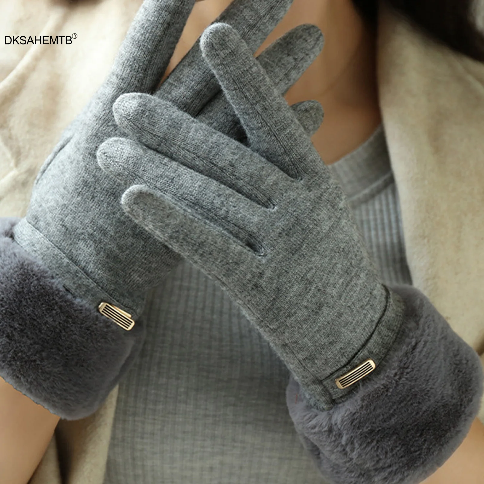 موضة الشتاء قفازات دافئة للنساء الدراجات ركوب يندبروف قفازات مخملية الخريف في الهواء الطلق الدافئة قفازات كاملة الأصابع القفازات 1 زوج