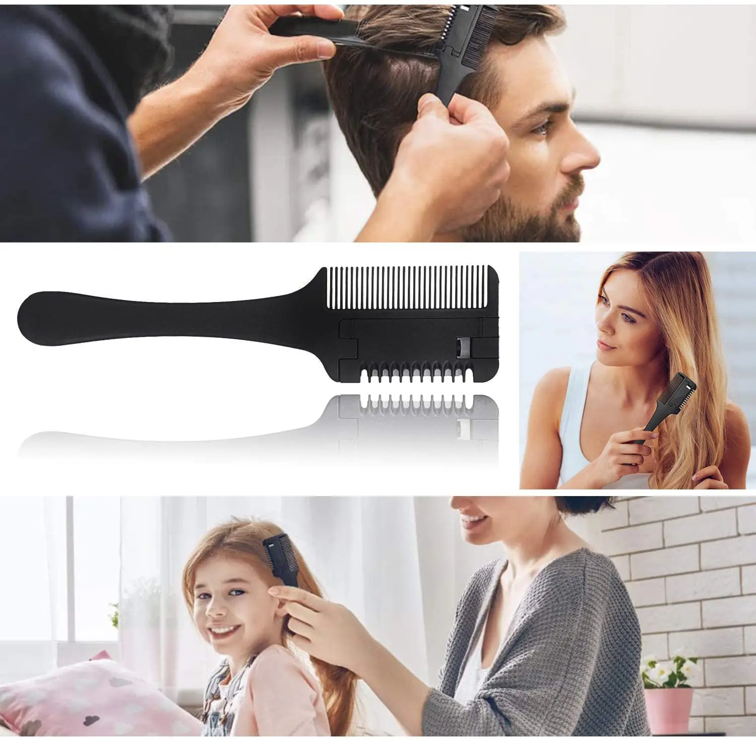 مشط الحلاق، فرشاة شعر كربون، فرشاة بمقبض احترافي مع شفرات حلاقة، شفرة حلاقة بحافة مزدوجة، أدوات تصفيف قابلة للفصل