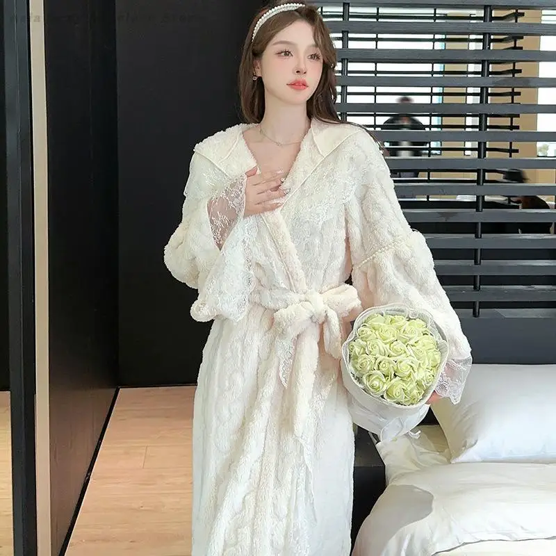 مثير المرقعة الدانتيل ثوب النوم الخريف الشتاء الفانيلا فستان النوم موضة مقنعين رداء طويل الإناث البشكير كيمونو ثوب المنزل