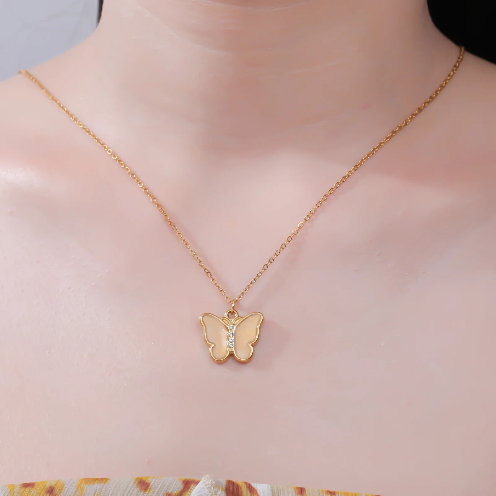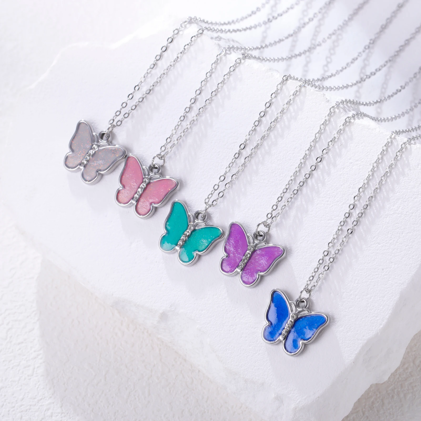 واضح الزركون فراشة قلادة قلادة الفولاذ المقاوم للصدأ الملونة المينا الفاخرة المرأة قلادة مجوهرات هدية عيد ميلاد بالجملة