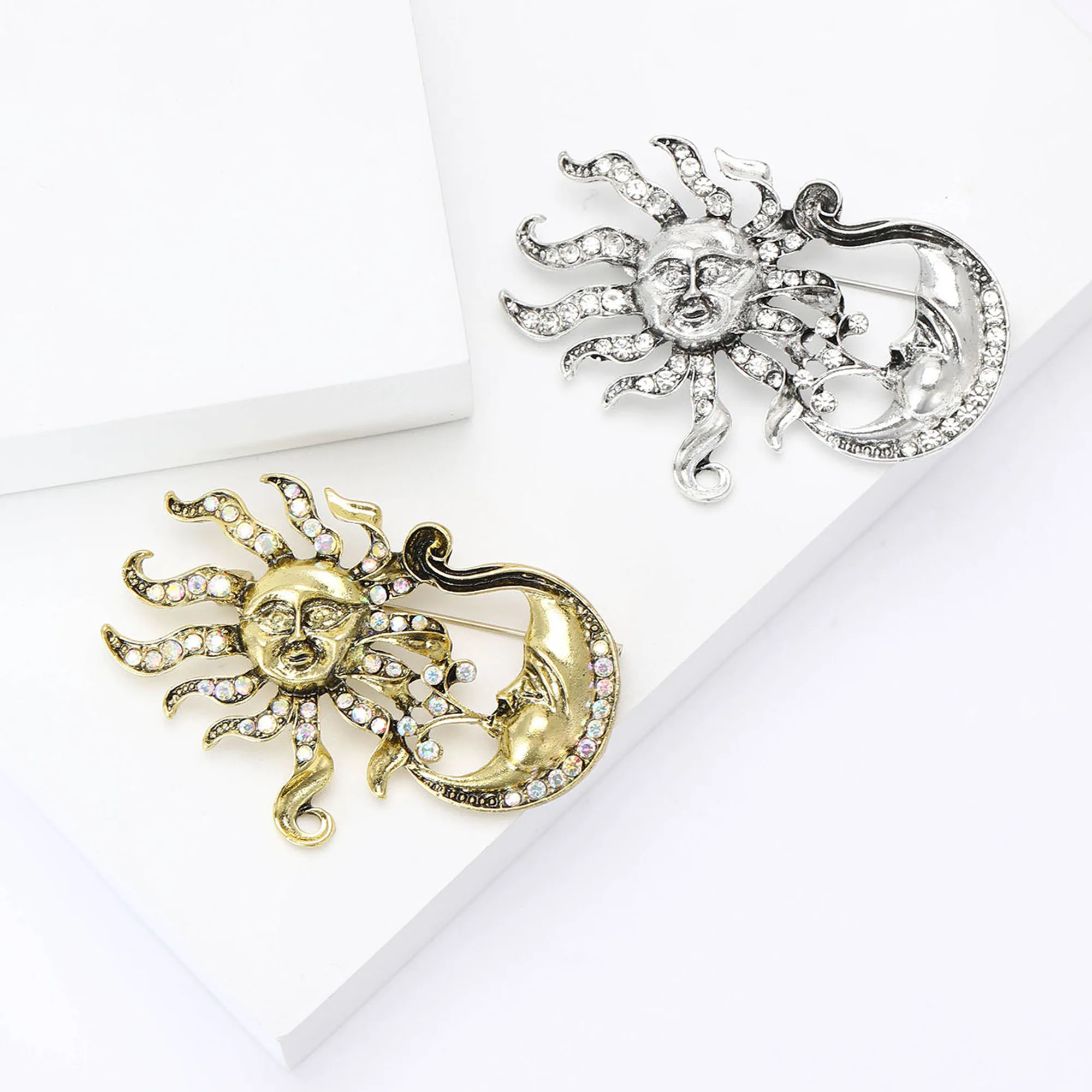 حجر الراين القمر بروش للنساء للرجال و النساء لامعة دبابيس الشمس مأدبة حقيبة الظهر هدايا مجوهرات اكسسوارات
