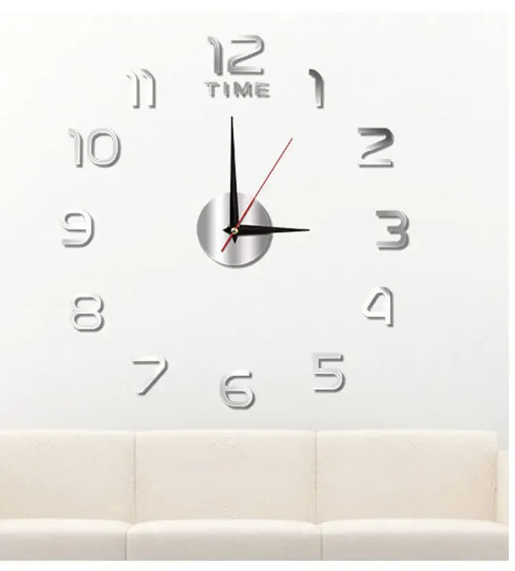 ساعة الحائط الكبيرة مع ملصقات مرآة الاكريليك ، Clocks بها بنفسك ساعات الكوارتز ، والساعات العصرية ، ديكور المنزل ، غرفة المعيشة ، التصميم الحديث