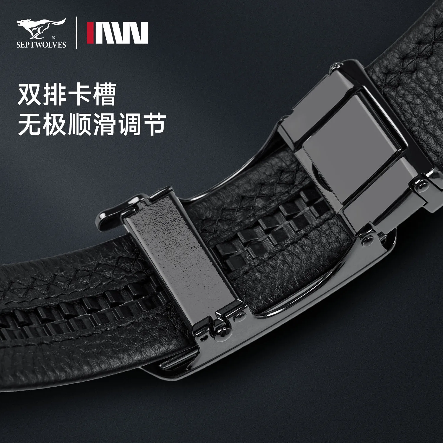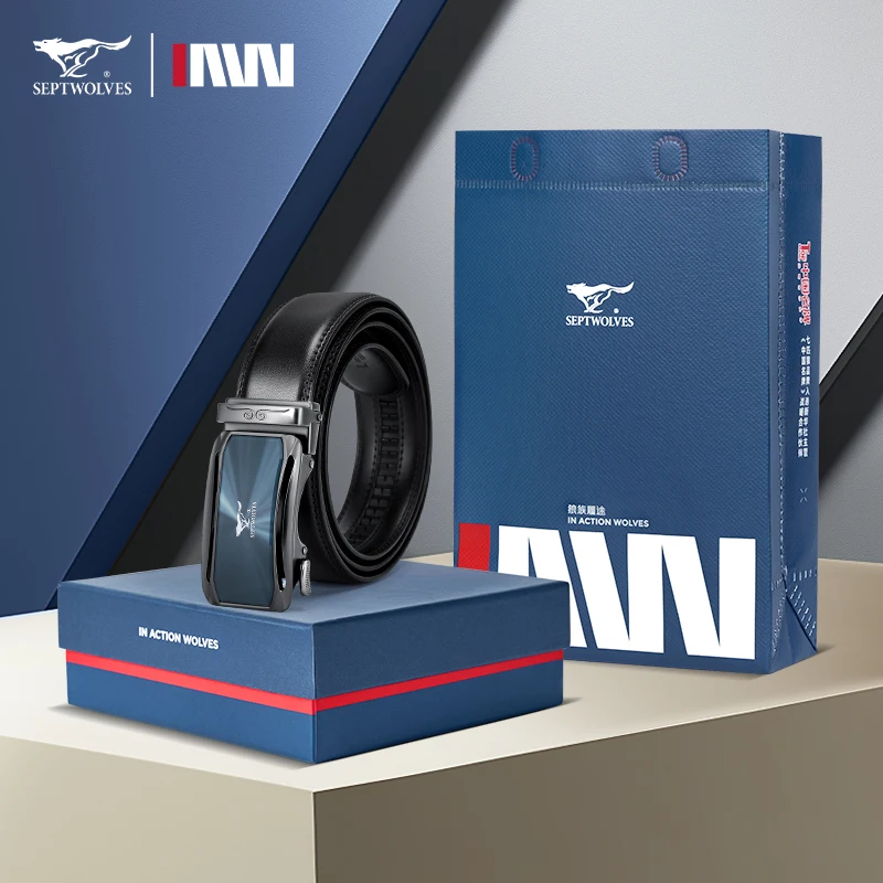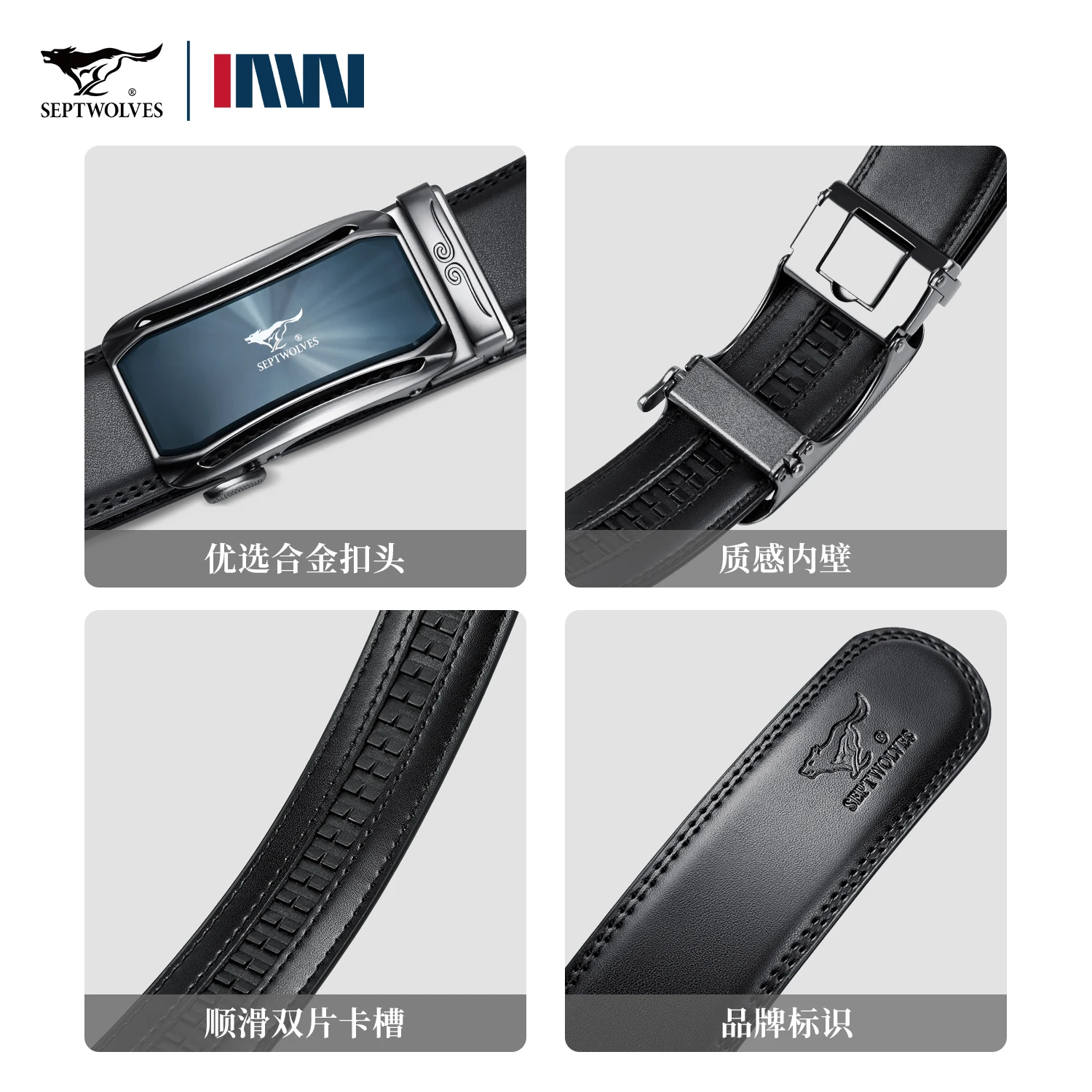 Septwolves العلامة التجارية الفاخرة حزام جلد طبيعي الرجال قابل للتعديل الخصر سلسلة عالية الجودة التلقائي مشبك الموضة مع صندوق أفضل هدية