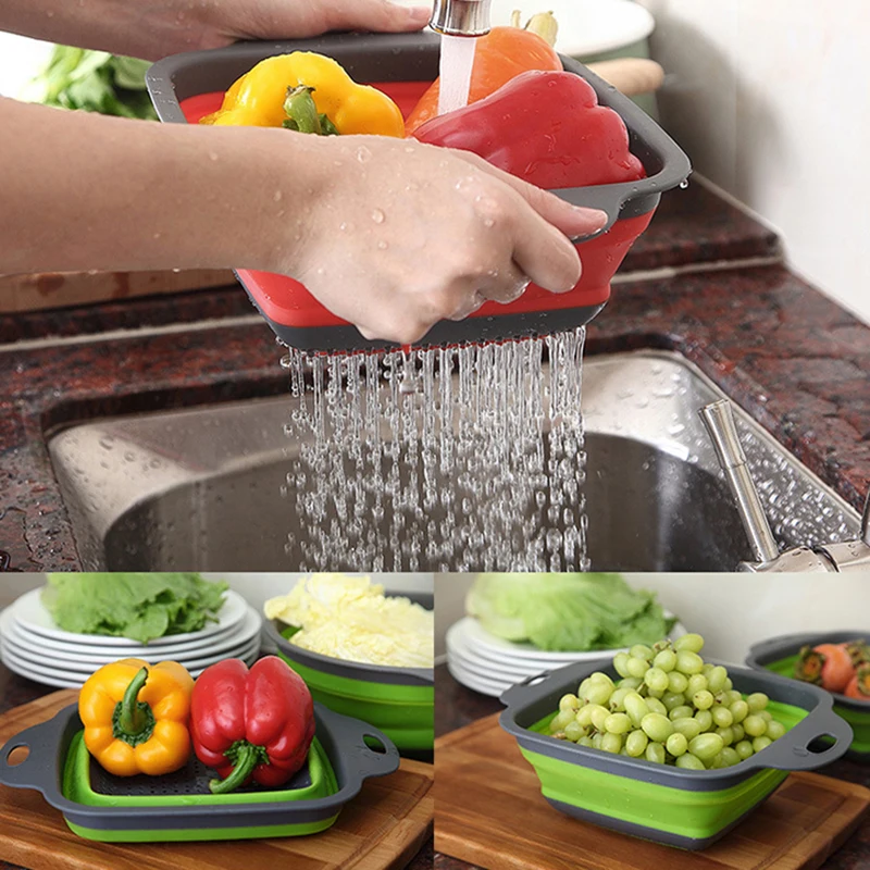 سلة تجفيف قابلة للطي من السيليكون، مصفاة مطبخ محمولة، غسيل فواكه وخضروات، تجفيف قابل للطي، جهاز تصريف أدوات المطبخ