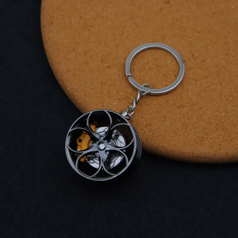 سلسلة مفاتيح معدنية لمحور عجلة السيارة، عجلة مصنوعة من خليط معدني مع حلقة مفاتيح قرص الفرامل، هدية إكسسوارات السيارات الإبداعية لمحبي السيارات