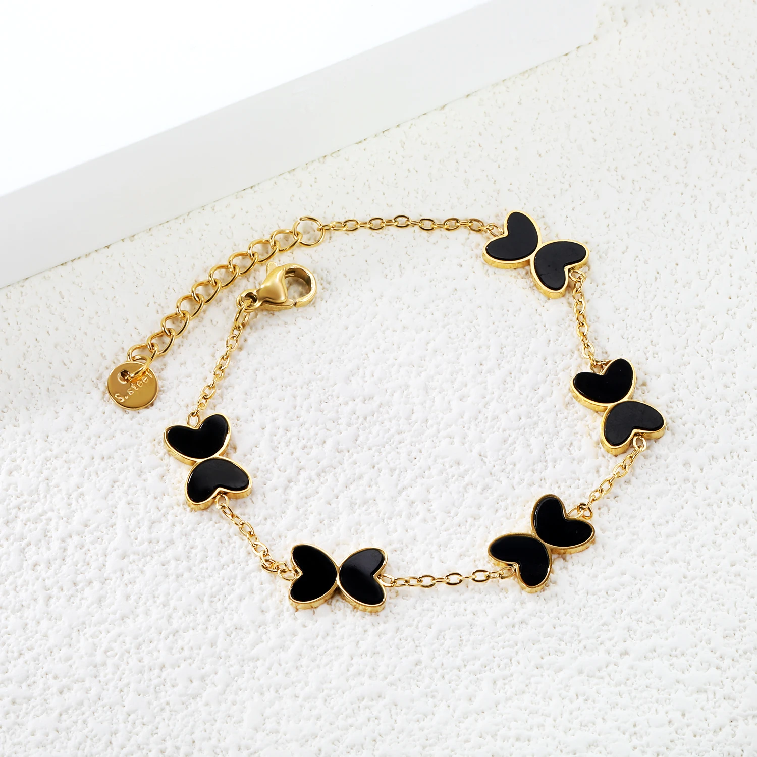 سوار على شكل فراشة على شكل قطرة زيت حلوة ولطيفة للفتيات من الفولاذ المقاوم للصدأ مطلي بالذهب مجوهرات كلاسيكية وإكسسوارات يومية عصرية