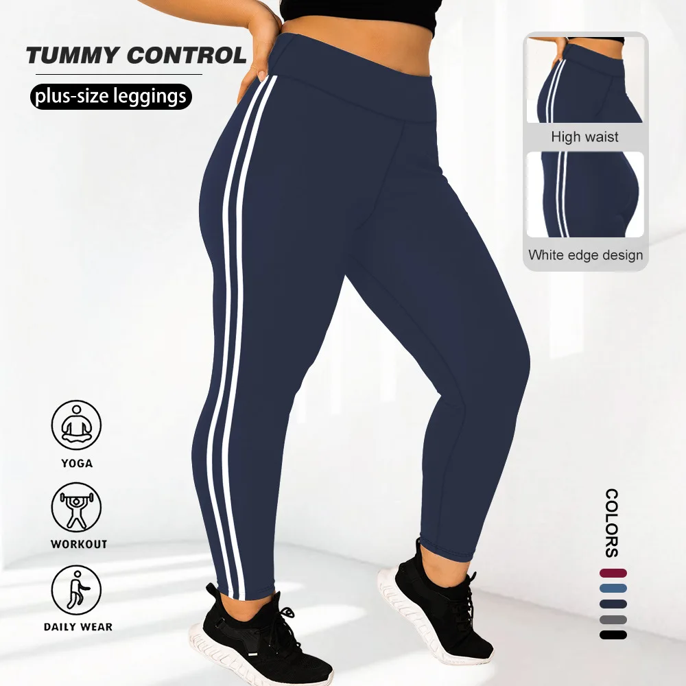 سراويل يوجا نسائية عالية الخصر بخطوط جانبية للتحكم في البطن بقصة ضيقة ملابس رياضية غير رسمية