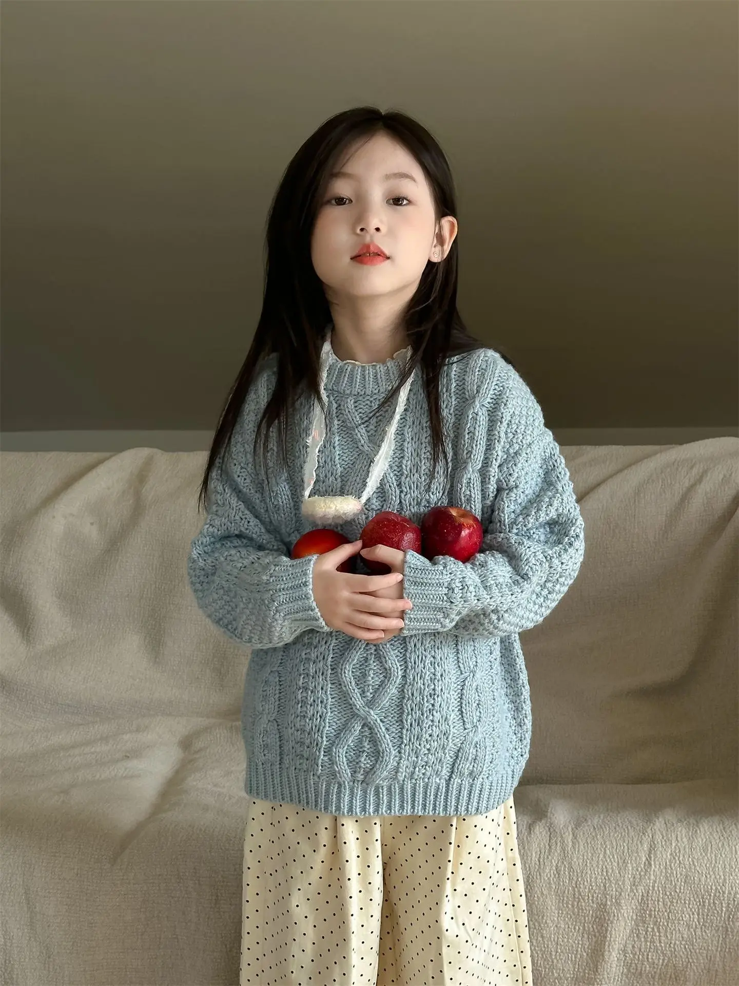 سترة علوية ملابس خارجية ملابس أطفال موضة ملابس أطفال جميلة لخريف بنات كوري جديد محبوك نمط كسول مريح