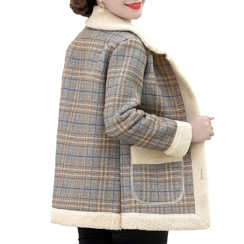 سترة مخملية قصيرة مبطنة بالصوف الجسيمات للأمهات في منتصف العمر للخريف والشتاء بياقة مربعة من ألياف البوليستر السميكة