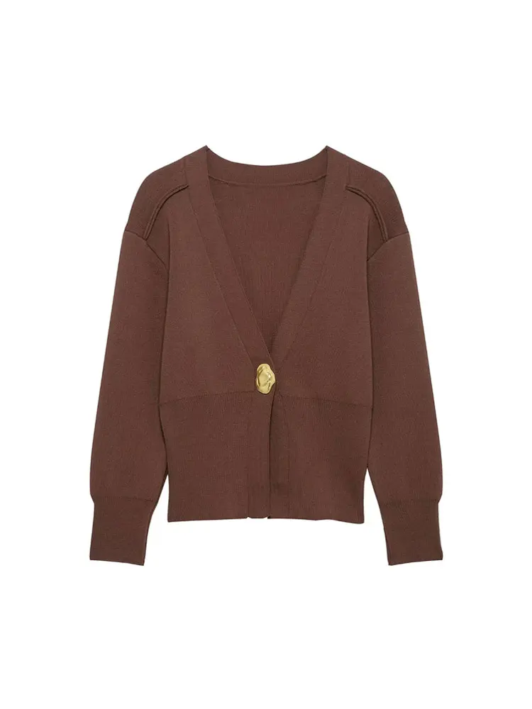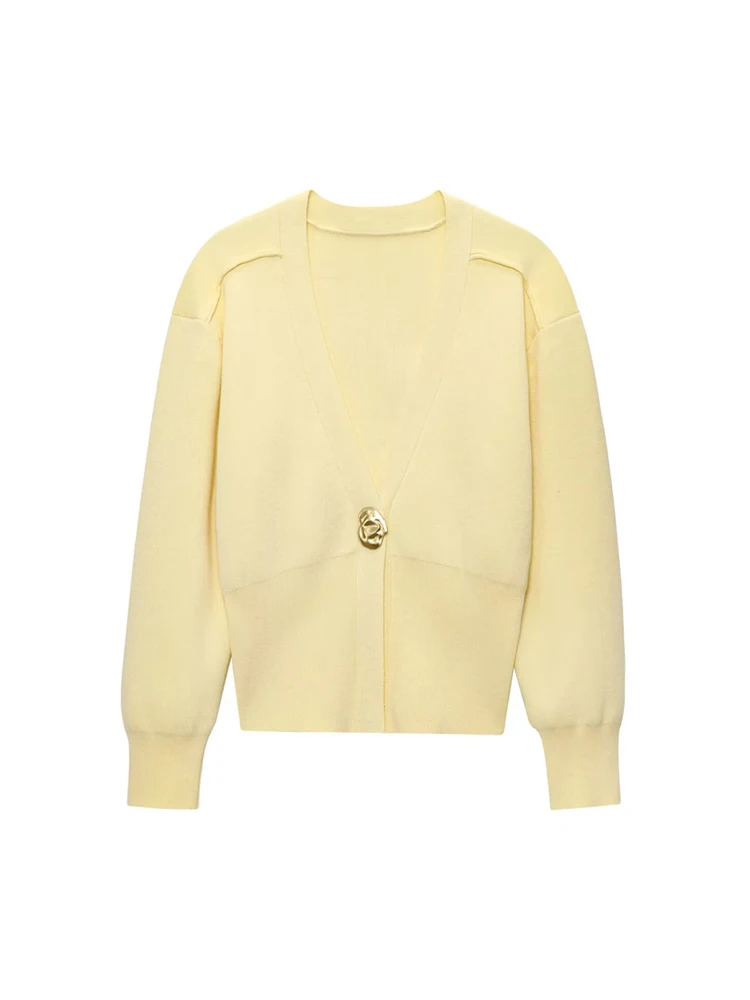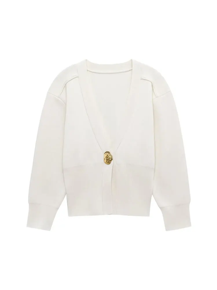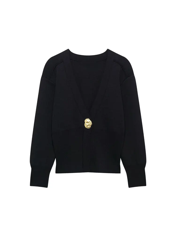 سترة نسائية عصرية من TRZA بأزرار ذهبية أمامية وفتحة رقبة على شكل V وأكمام طويلة ملابس خارجية نسائية أنيقة