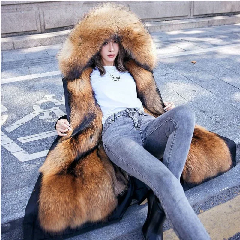 سترات دافئة سميكة للنساء ، معطف قطني ، جاكيت نسائي ، ملابس خارجية بغطاء للرقبة ، مقاس كبير ، بطانة داخلية ، فرو قابل للإزالة ، معطف فوق الركبة ، شتاء