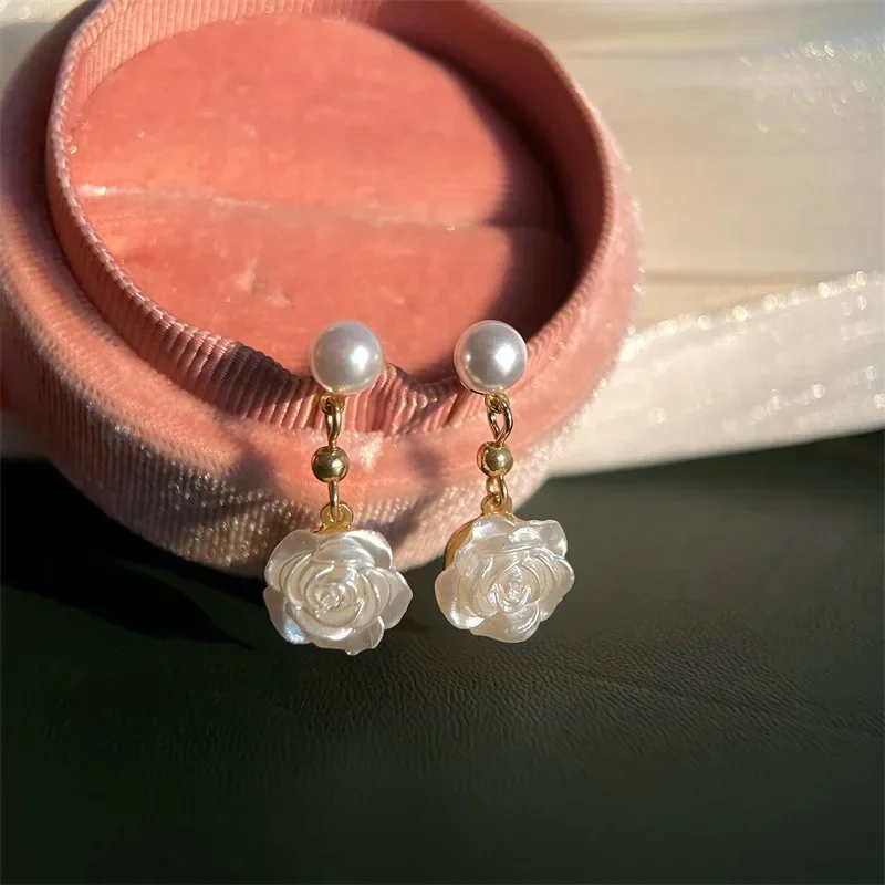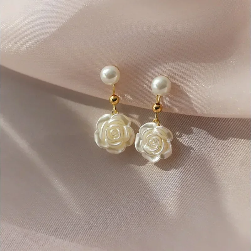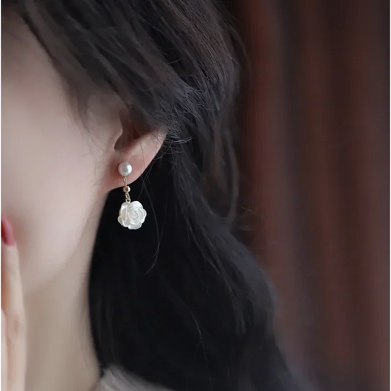 سيرجيجي Жыыы النساء كاميليا اللؤلؤ القرط المتخصصة تصميم تحسس ترصيع موضة فريدة زهرة أقراط ثقب المجوهرات النسائية