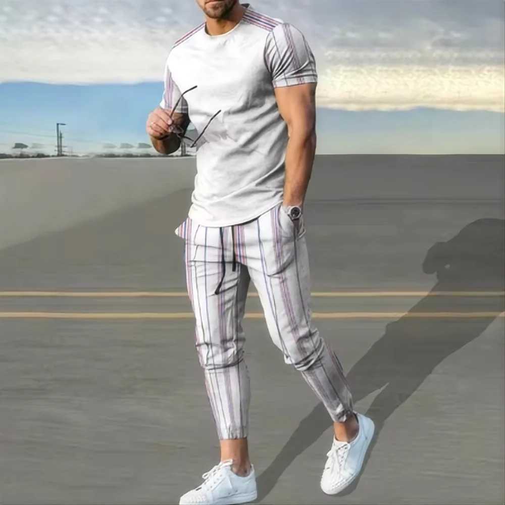 طقم ملابس رياضية لكرة السلة بطبعة ثلاثية الأبعاد للرجال ، تي شيرت بأكمام قصيرة ، بنطلون طويل ، مقاس كبير غير رسمي ، الصيف ، 2 من من من من من الخارج