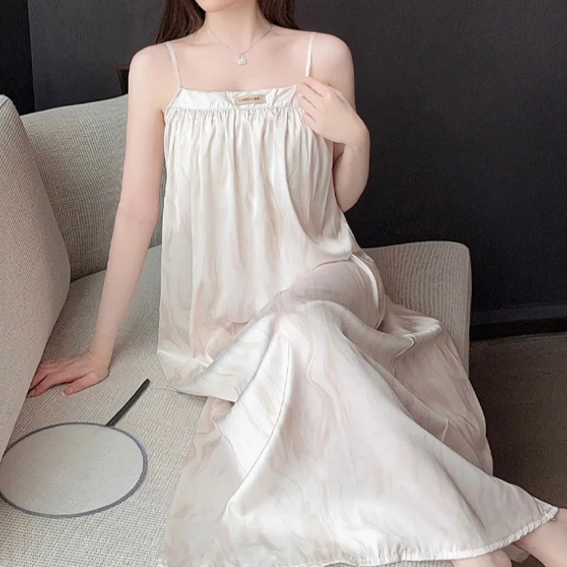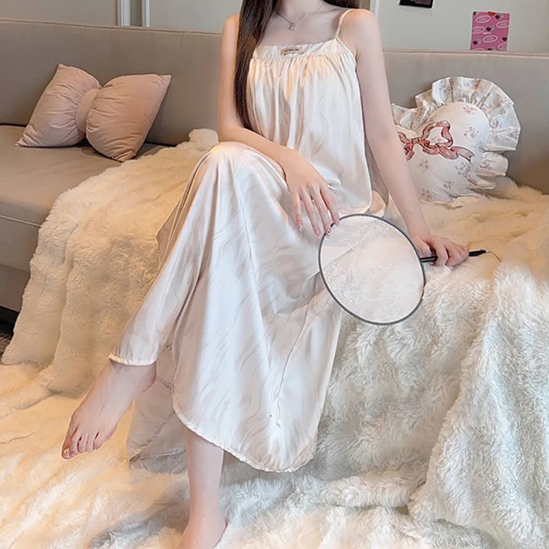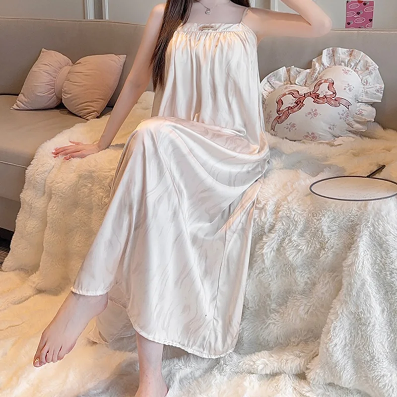 تنورة نوم على الطراز الفرنسي للنساء، سترة أنيقة، فستان طويل، بدون أكمام، حزام معلق، ملابس منزلية مريحة