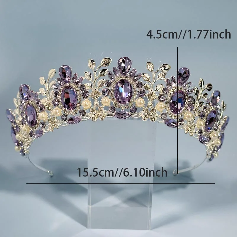 تيجان الشعر الأرجواني والتيجان للرأس للنساء ، قلادة الإكليل الأرجواني ، مجوهرات الزفاف الفاخرة ، الحبر الأرجواني ، حفل الزفاف